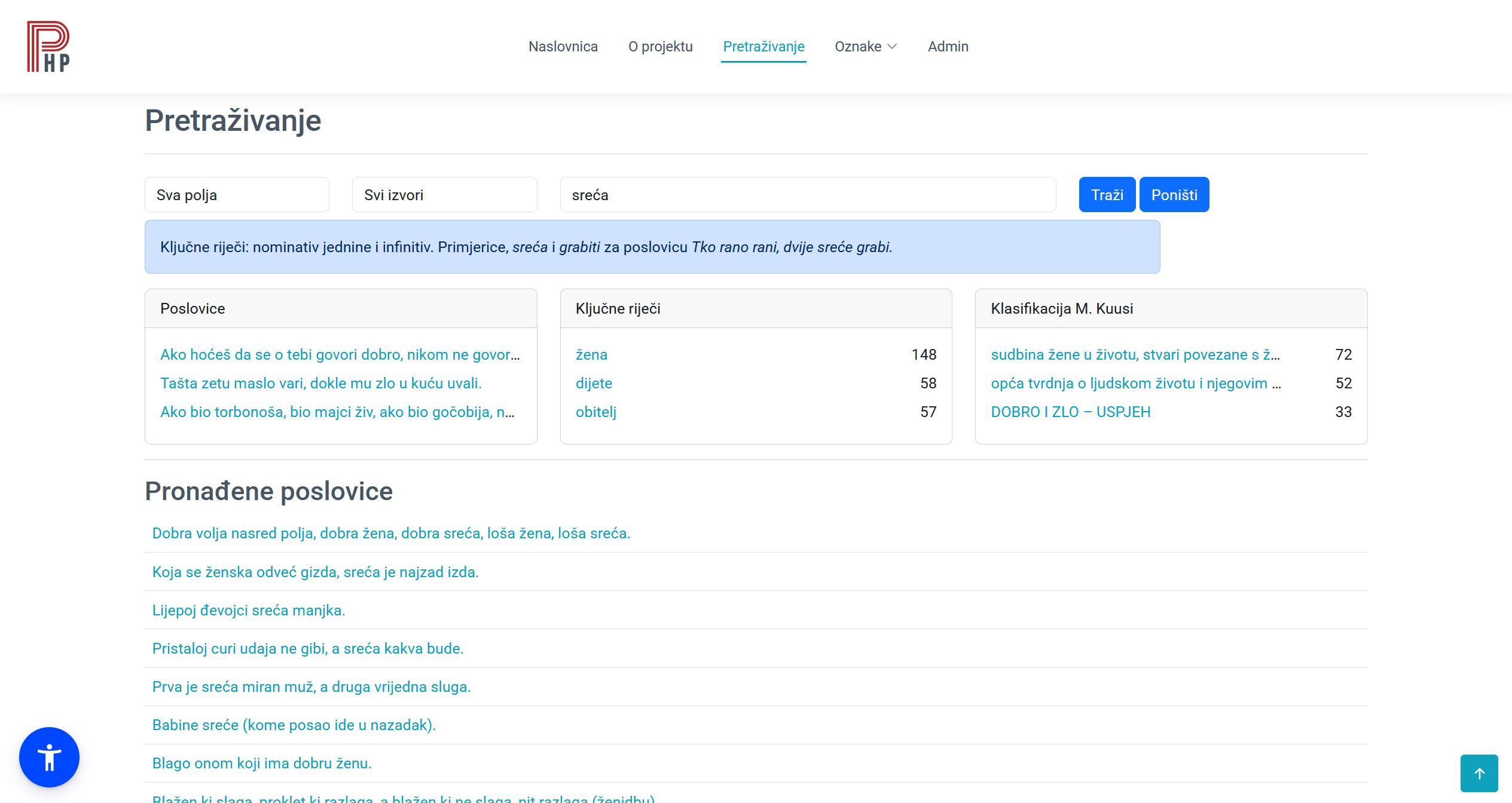 Korisničko sučelje za pretraživanje poslovica na Portalu