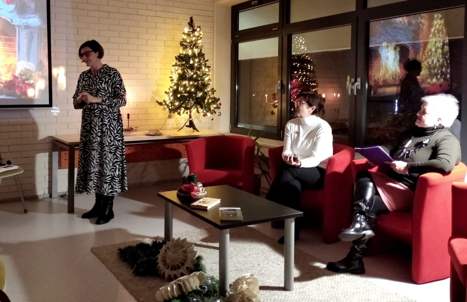 "Božićni storytelling" za cilj je imao kroz pripovijedanje predstaviti božićne običaje koji se znatno razlikuju od naših te su publici predstavljeni neki od običaja Švedske, Islanda, Irske i Engleske. Božićni običaji predstavili su dobar temelj za pripovijedanje priča, jer uz njih je bilo lako identificirati emociju i poruku koju želimo prenijeti publici, no bilo je potrebno za to odabrati dobre priče te ih prilagoditi, vizualizirati i predstaviti publici. Pripovjedačice su tako dobile priliku i publiku za uvježbavanje svog pripovjedačkog umijeća, a publika zanimljivu priču, interakciju te nova saznanja o božićnim običajima. U ugodnom blagdanskom ozračju, uz domaće kolače i stare božićne pjesme u pozadini, pričalo se o švedskom običaju obiteljskog gledanja animiranih filmova (naročito Paška Patka), islandskom običaju darivanja knjiga ("Jolabokaflod" ili božićna poplava knjiga), obilascima irskih pubova ("12 božićnih pubova"), tradicionalnom engleskom božićnom pudingu i brojnim drugim zanimljivim običajima. Također, čitani su i ulomci djela "Božićna priča" Charlesa Dickensa, "Tiha noć" Selme Lagerlöf te islandska saga i irska priča, čime je ujedno obilježen i značaj pisane riječi.