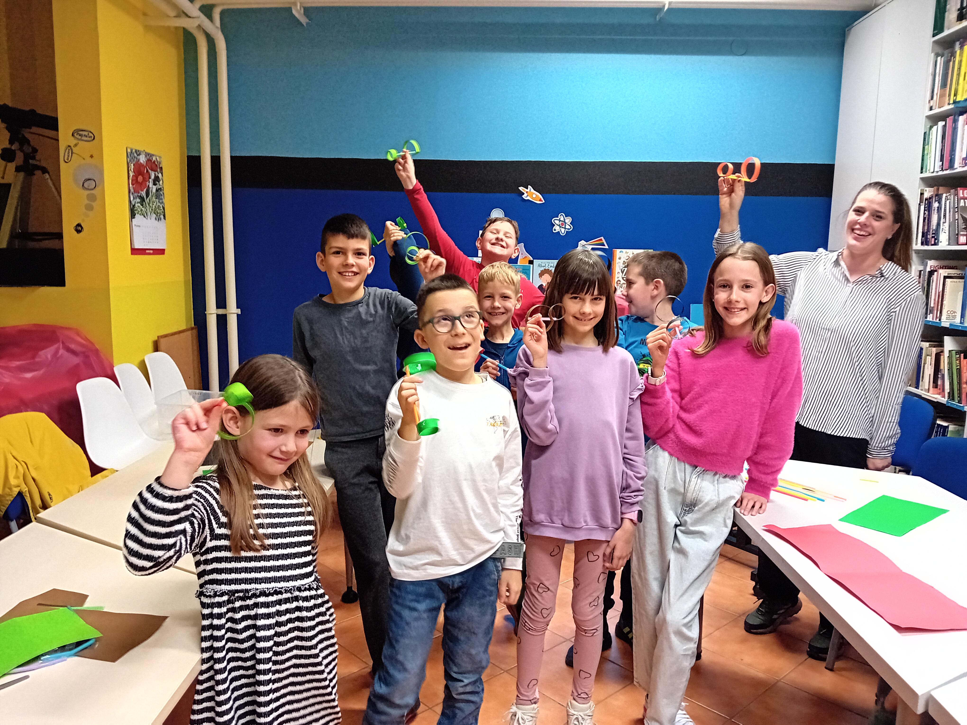 Izrađivali su se balonski auti – pokus kojim se prikazao Newtonov treći zakon gibanja. Provodili su se eksperimenti o djelovanju elektriciteta na kojima se učilo da se električni naboj može skupljati na predmetima i postati pozitivan ili negativan. Učilo se što je to refrakcija te kako se može raspršiti svjetlost i napraviti dugu. Promatrao se kako se različite tekućine odvajaju u slojeve ovisno o njihovoj gustoći, izrađivali su se avioni i provodili trikovi s optičkim iluzijama, kojima se dokazalo da nas oči mogu zavarati. Kroz umjetnost sviranja na staklenim čašama polaznici su razvijali sluh i zaključili su da promjenom količine vode u čaši dobivamo različite zvukove koji nastaju vibracijom. Djeca su razvijala njuh kroz igru u kojoj im je stavljen povez oko očiju te su trebala prepoznati određene mirise, a naučila su da su osjetilo mirisa i okusa međusobno povezani. Na kraju su modeliranjem smjese od ljepila i tekućeg deterdženta razvijala osjetilo dodira.Djeca su po prirodi znatiželjna, a knjižnica je idealno mjesto koje svojim raznolikim programima može potaknuti želju za istraživanjem. Ona je mjesto na kojem se razvija ljubav prema knjizi i čitanju, mjesto poticanja inovativnosti, kreativnosti na kojem se uči povezujući informacije iz različitih disciplina. Provedene STEAM aktivnosti djeci su pružile priliku da postanu aktivni sudionici koji promatraju, predviđaju, suradnički rješavaju problem i uče putem pokušaja i pogreške. Uvod je to u znanstveni način razmišljanja koji se temelji na postavljanju hipoteza i na traženju dokaza koji će te hipoteze potvrditi ili odbaciti. Stvaranjem poticajnog okruženja polaznicima se omogućilo da uče kroz kroz igru, zabavu i istraživanje putem osjetila, a zbog iskazanog interesa za ovakve aktivnosti, u budućnosti se najavljuje nastavak programa.
