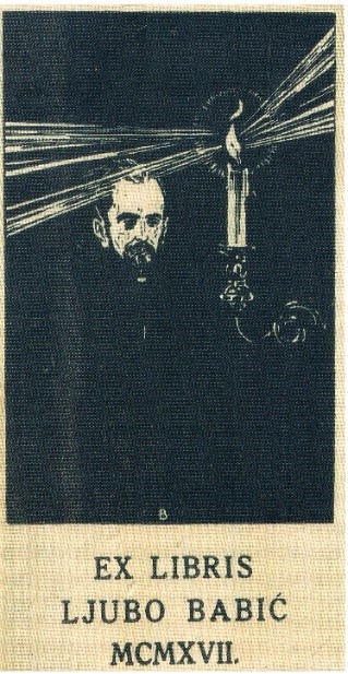 Od navedenih umjetnika – ekslibrista valja nešto više reći o Tomislavu Krizmanu (1882. – 1955.) i Ljubi Babiću (1890. – 1974.). Tomislav Krizman učio je grafiku kod našeg prvog školovanog grafičara M. Cl. Crnčića te je pod njegovim utjecajem svoje sitne grafike i vinjete izrađivao u hrvatskim secesijskim časopisima “Život” i “Vijenac”. Majstorstvo izvedbe, preciznost oblikovanja detalja i posebna ugođajnost cjeline te iznad svega karakterističan potez daju svakoj njegovoj naljepnici autorski pečat. Razvijanjem secesijske dekorativne linearnosti s prizvucima metafizičkog, Krizman je dao pun dignitet sitnoj grafici i otvorio puteve za njihov plodan razvoj, kombiniranjem secesionističke i narodne ornamentike. Ljubo Babić ostvario je desetak lijepih primjeraka za svoju knjižnicu, od kojih je onaj s njegovim autoportretom najprepoznatljiviji, izveden majstorski savršeno, uzorak kojemu su se teško mogli približiti čak i oni umjetnici koji su se i više od Babića angažirali u toj vrsti grafike.