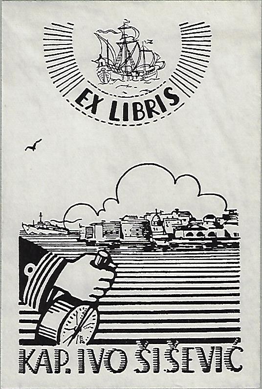 Kapetan Ivo Šišević (Trnova kod Slanog, 12. kolovoza 1904. – Dubrovnik, 27. lipnja 1990.) bio je dubrovački kapetan duge plovidbe i publicist. Autor je više desetaka radova i članaka, tematski najčešće vezanih uz pomorstvo. Bio je član odbora za obljetnice Jedriličarskog kluba Orsan i festanjuo na Festi svetog Vlaha 1941. godine. Ipak, more nije bilo njegovo jedino polje interesa. Bio je dopisnik raznih novina i časopisa od rane mladosti te pokretač i urednik dubrovačkih listova. Njegov prvi urednički posao bilo je izdavaštvo lista “Plivački reporter” koji je povremeno izlazio od kraja kolovoza 1933. do početka rujna 1934. Iste godine bio je jedan od pokretača, glavni i odgovorni urednik kulturno-informativnog lista “Dubrava”, kasnijeg naziva “Hrvatska Dubrava”. U isto vrijeme izdavao je i karnevalske listove, tradicionalne “Foje od pazara”, čiji su brojevi izlazili najčešće jednom do par puta godišnje. U pauzi od broda 1938. godine započeo je i s izdavanjem lista “Hrvatski jug”. Osim uredničkog posla i suradnje s raznim listovima u Dubrovniku i šire, Šišević je pisao članke najčešće pomorskih tema i o tiskarstvu u Dubrovniku te autobiografske memoare o važnim ličnostima iz prošlosti i sadašnjosti. Prema tome, nije neobično da njegov ex libris prikazuje baš Dubrovnik, kompas i brod karaku u daljini.