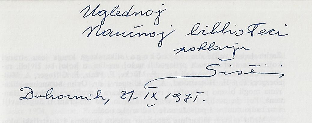 Dubrovačka biblioteka otvorena je 1941. godine. Njezino tadašnje “naučno odijeljenje” s vremenom je i izmjenama u poslovanju postalo Znanstvena knjižnica, dio Dubrovačkih knjižnica. Fond Znanstvene knjižnice temelji se na obveznom primjerku, zavičajnoj zbirci Ragusina i Zbirci starih i rijetkih knjiga. U mnogim knjigama nalaze se ex librisi, rukopisni zapisi i drugi dokazi koje su ostavljali prijašnji vlasnici. Okupljanje zbirke ili privatne knjižnice neke znamenite osobe jedan je od razloga za zapisivanjem prijašnjeg vlasništva u katalog knjižnice. Jedan tako upečatljiv ex libris još zanimljivijeg vlasnika je ex libris kapetana Iva Šiševića iz Dubrovnika.
