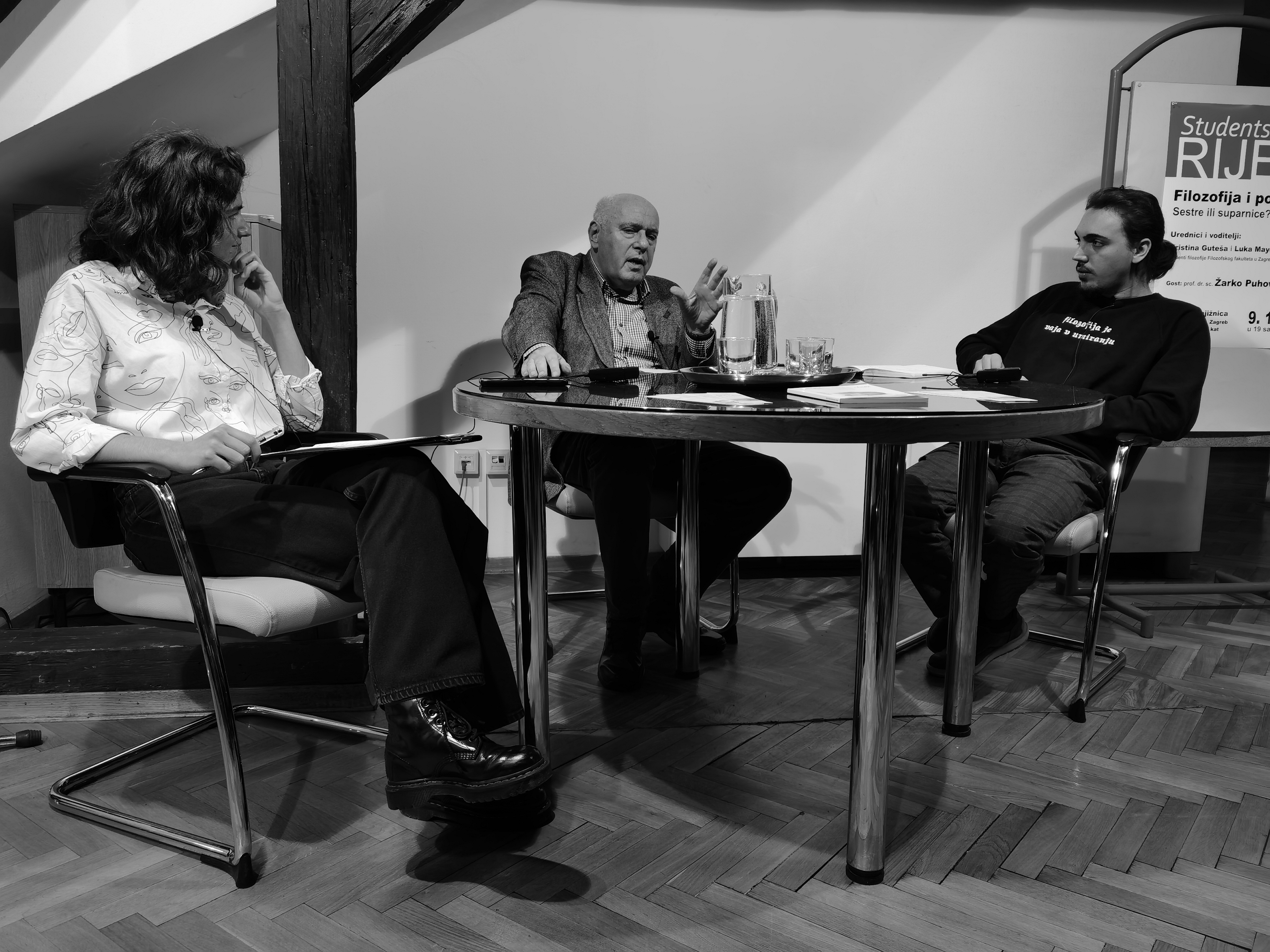 Započelo se sa suradnjom s Odsjekom za filozofiju Filozofskog fakulteta Sveučilišta u Zagrebu, točnije s dvoje studenata spomenutog odsjeka, koji su uređivali i vodili ukupno sedam tribina posvećenih raznim temama, poput odnosa filozofije i politike, kulture narcizma, humanistike i antihumanizma, obrazovanja danas…