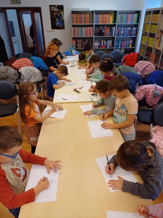 Djeca vrtićke skupine Ribice crtaju nakon čitanja priče