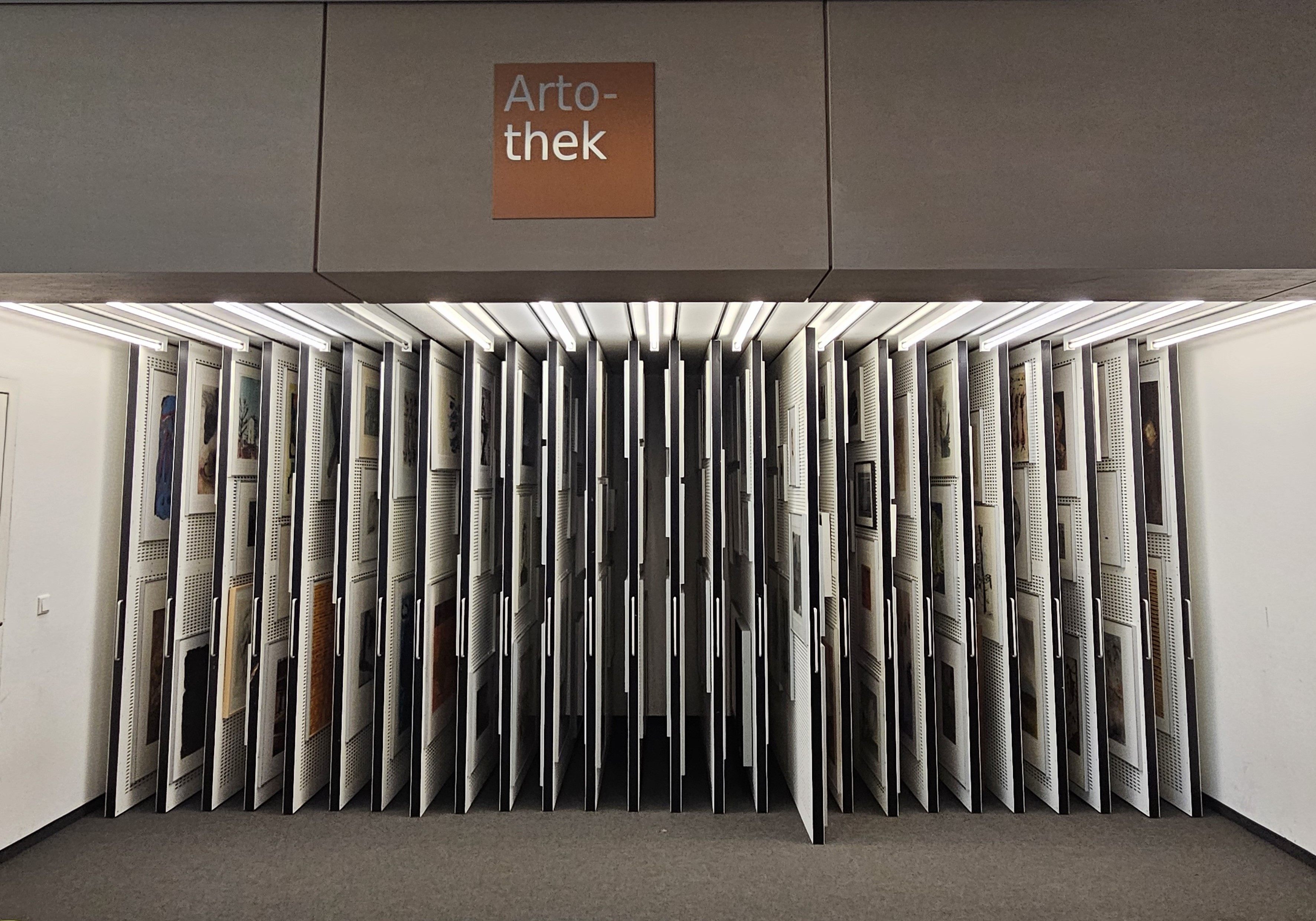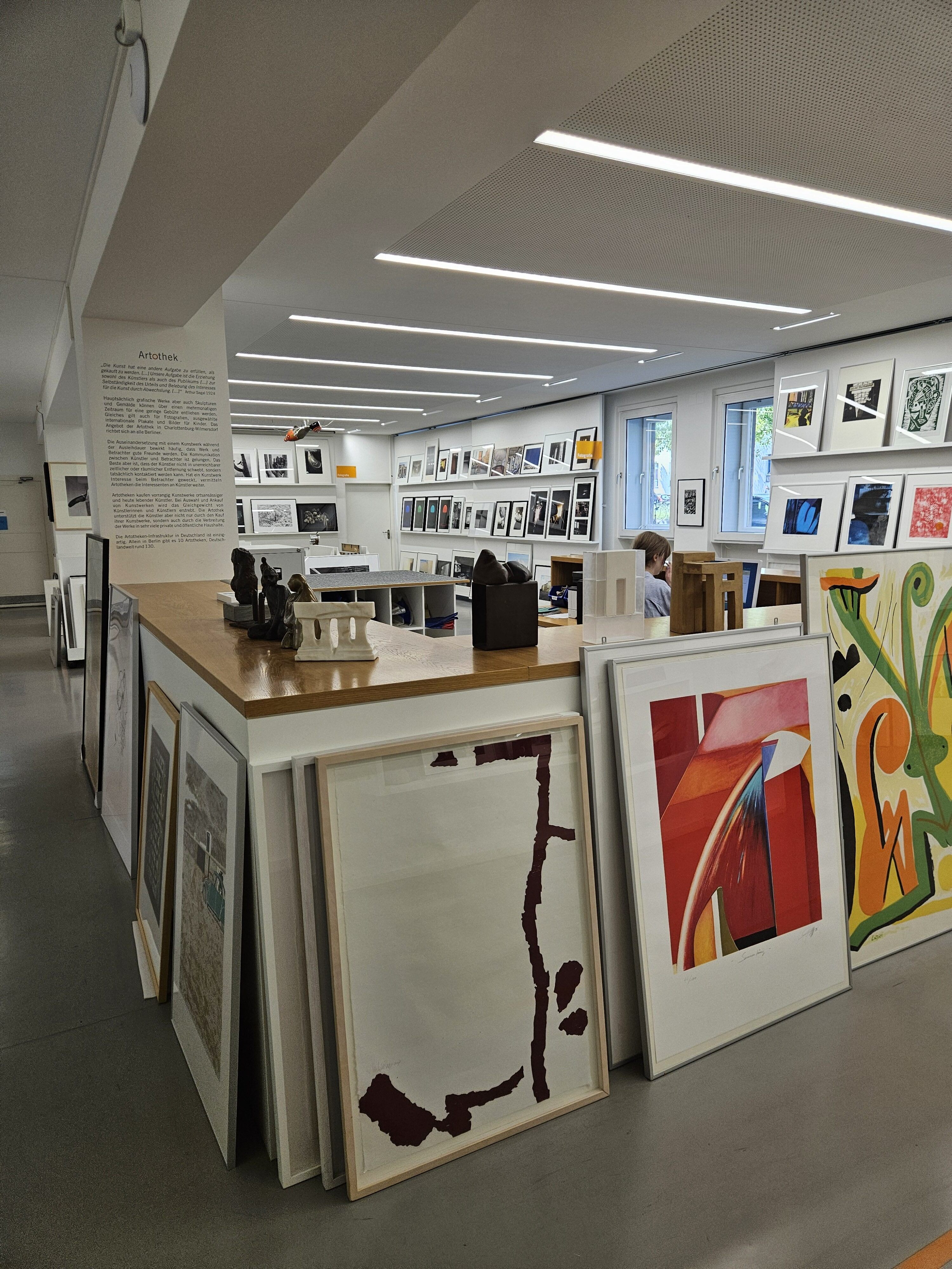 Program mobilnosti uključivao je tzv. job shadowing, odnosno promatranje rada ustanove u svrhu upoznavanja s temeljnim poslovanjem knjižnice, njezinom strukturom, odjelima i uslugama. Pritom je poseban naglasak stavljen na rad artoteka pa smo imale priliku posjetiti četiri različite artoteke. Artoteke su zbirke originalnih djela suvremene umjetnosti, najčešće slika, grafika, crteža ili fotografija, ali i skulptura, koje je moguće posuditi, bilo za privatnu ili javnu uporabu, na određeno vremensko razdoblje, bez naknade ili uz manju naknadu. Cilj je takvih zbirki promovirati umjetnost i umjetnike, učiniti umjetnost dostupnom široj publici te razvijati vizualnu kulturu i pismenost. Stanovnici Berlina u svojoj narodnoj knjižnici imaju mogućnost birati između približno 2000 originalnih umjetnina 20. i 21. stoljeća, s posebnim fokusom na berlinske umjetnike, koje mogu posuditi na 84 dana (uz mogućnost produženja) ako su učlanjeni u knjižnicu. Jedan korisnik istovremeno može posuditi najviše 10 slika, 10 grafika, 5 fotografija i 5 skulptura, a podatak o ukupno 7500 posudbi umjetničkih djela godišnje govori kako je ovakav oblik demokratizacije umjetnosti kod korisnika ove berlinske knjižnice pronašao svoje mjesto. Čitava zbirka pretraživa je u online katalogu.