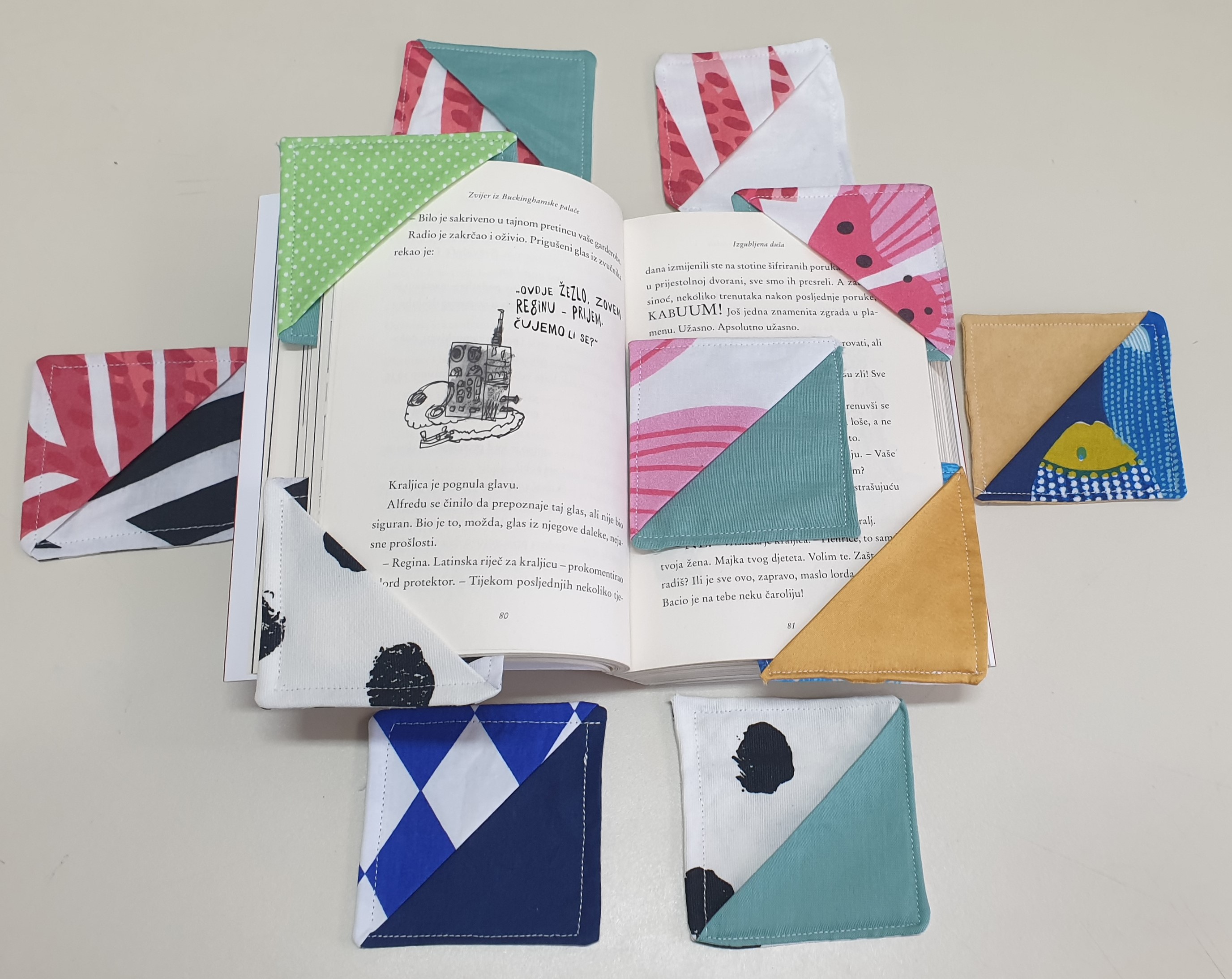 Knjigotvorine – kreativni radovi učenika koji uključuju ručno izrađene knjižne dodatke, vrećice i straničnike od tkanine koji su plod njihove mašte i ljubavi prema knjizi.