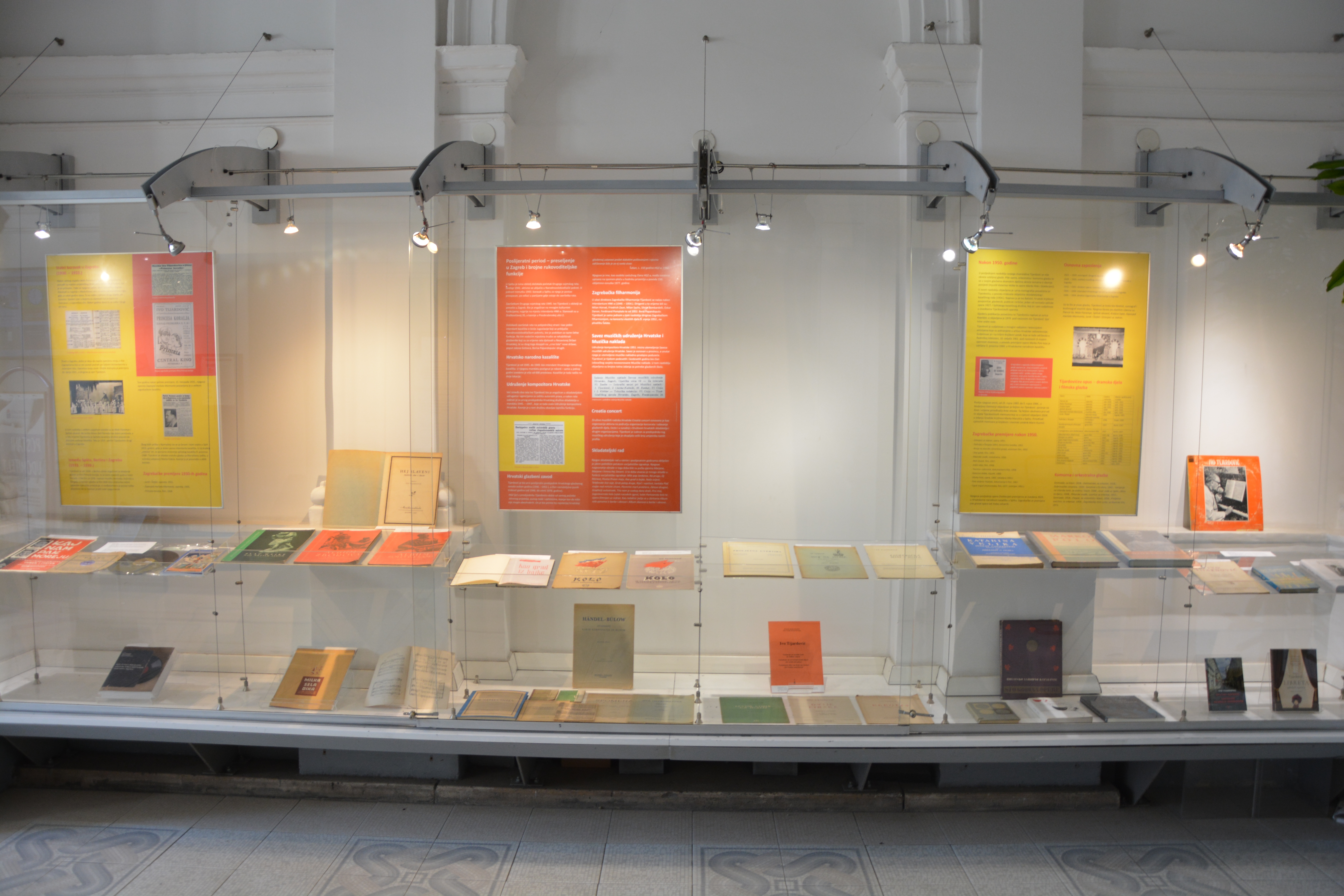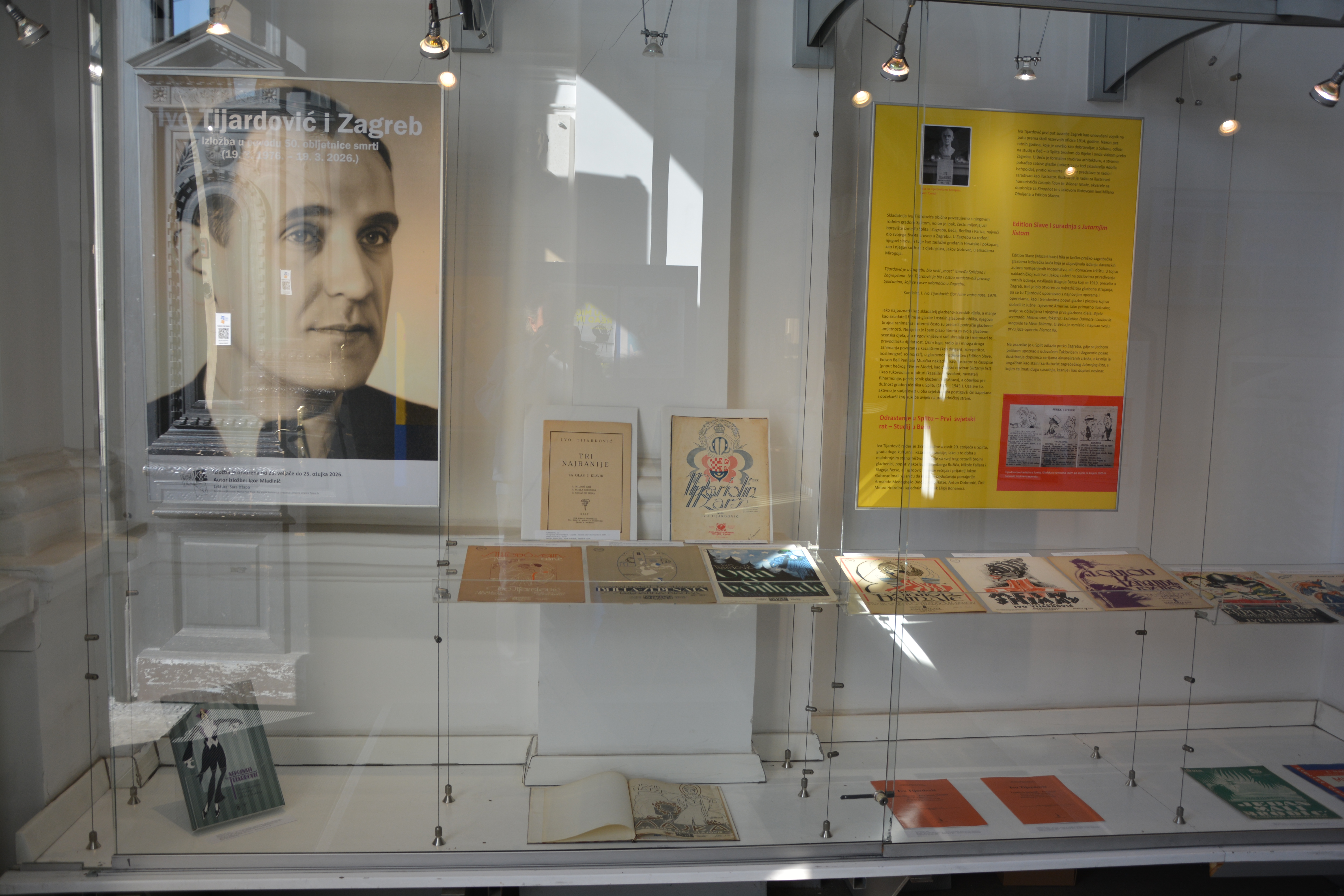 Uz prateće postere koji prikazuju kronologiju njegova djelovanja, izložena su brojna notna i druga izdanja njegovih djela te djela o njemu – više od šezdeset jedinica objavljenih od 1921. do 2025. godine.