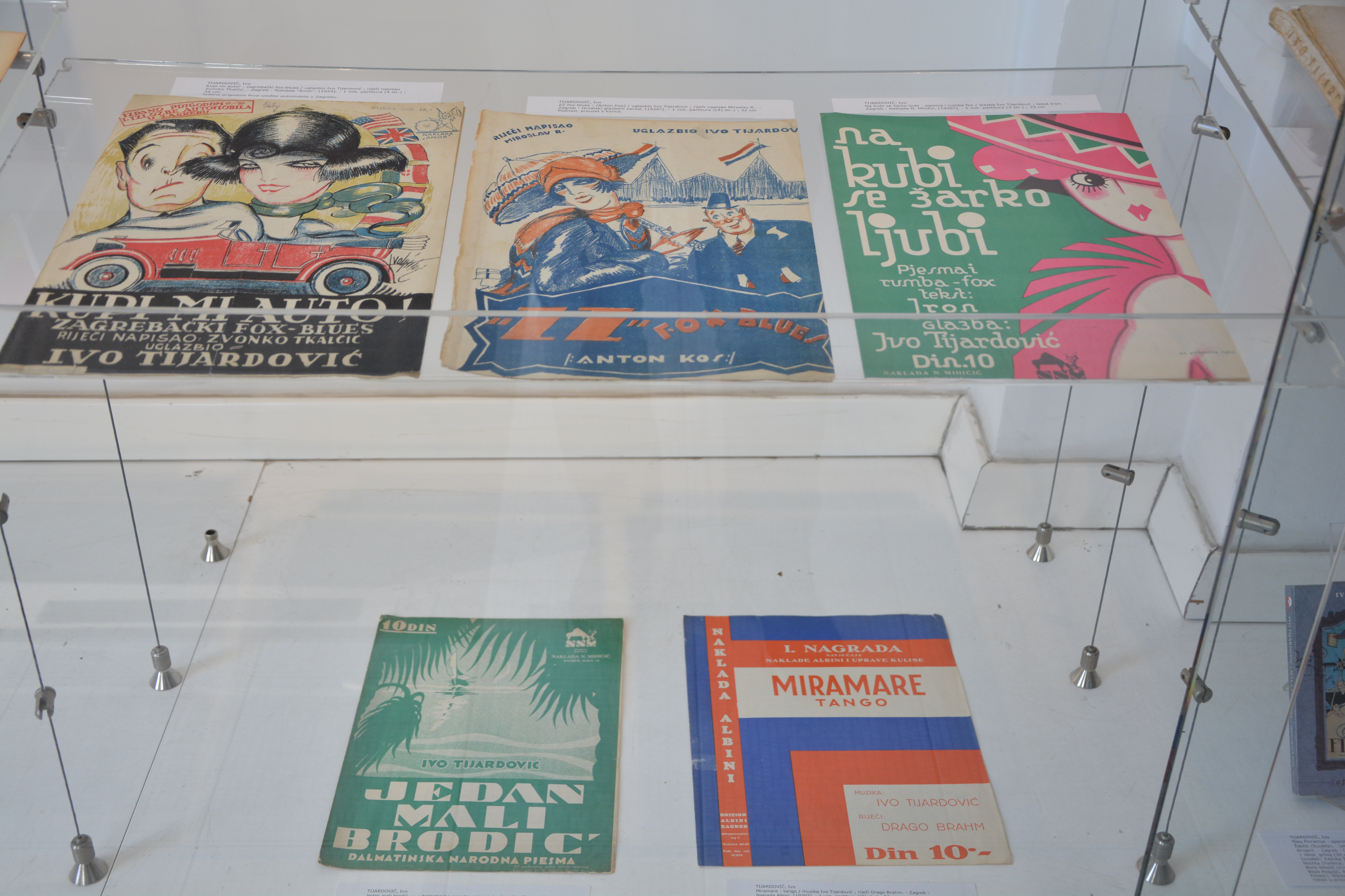 Tijardović je napisao osam libreta za svoja djela, a za mnoge postave radio je i scenografiju i kostimografiju, čiji prikaz nažalost nije stao na ovu izložbu. Na zadnjem posteru izložbe prikazan je popis njegovih glazbenih djela.